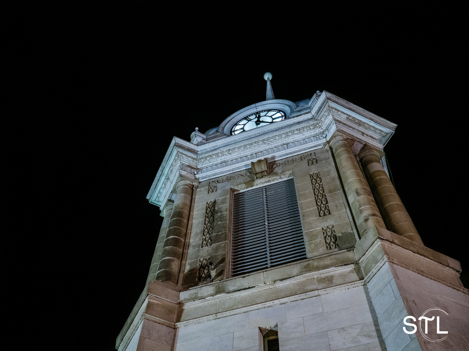 Since my main goal was to capture the finale, I had to find out exactly where the fireworks were going to be set off. After some asking around, I discovered that the fireworks would be shot from the top of the courthouse. I don’t think there could be a better scenario than to have fireworks shot form the courthouse itself. With that bit of information, I immediately knew the composition I wanted. When I did not think the night could get any better, I was approached by a woman who turned out to be the Director of the Center of Hope. This organization provides emergency shelter and counseling for victims of domestic violence in Maury County. All proceeds from the Mule Drop goes to the Center of Hope. The director asked if I was Shuttering Thru Life. It turns out that I have corresponded with her through Facebook, but I did not know her face. We began talking about some of my work, and we talked about my pictures from last year’s Mule Drop. She then invited me to take a quick tour to the roof of the courthouse with her and the County Mayor later on that night just before the final countdown. I could not say no to a chance to capture some perspectives I would otherwise never be able to capture.