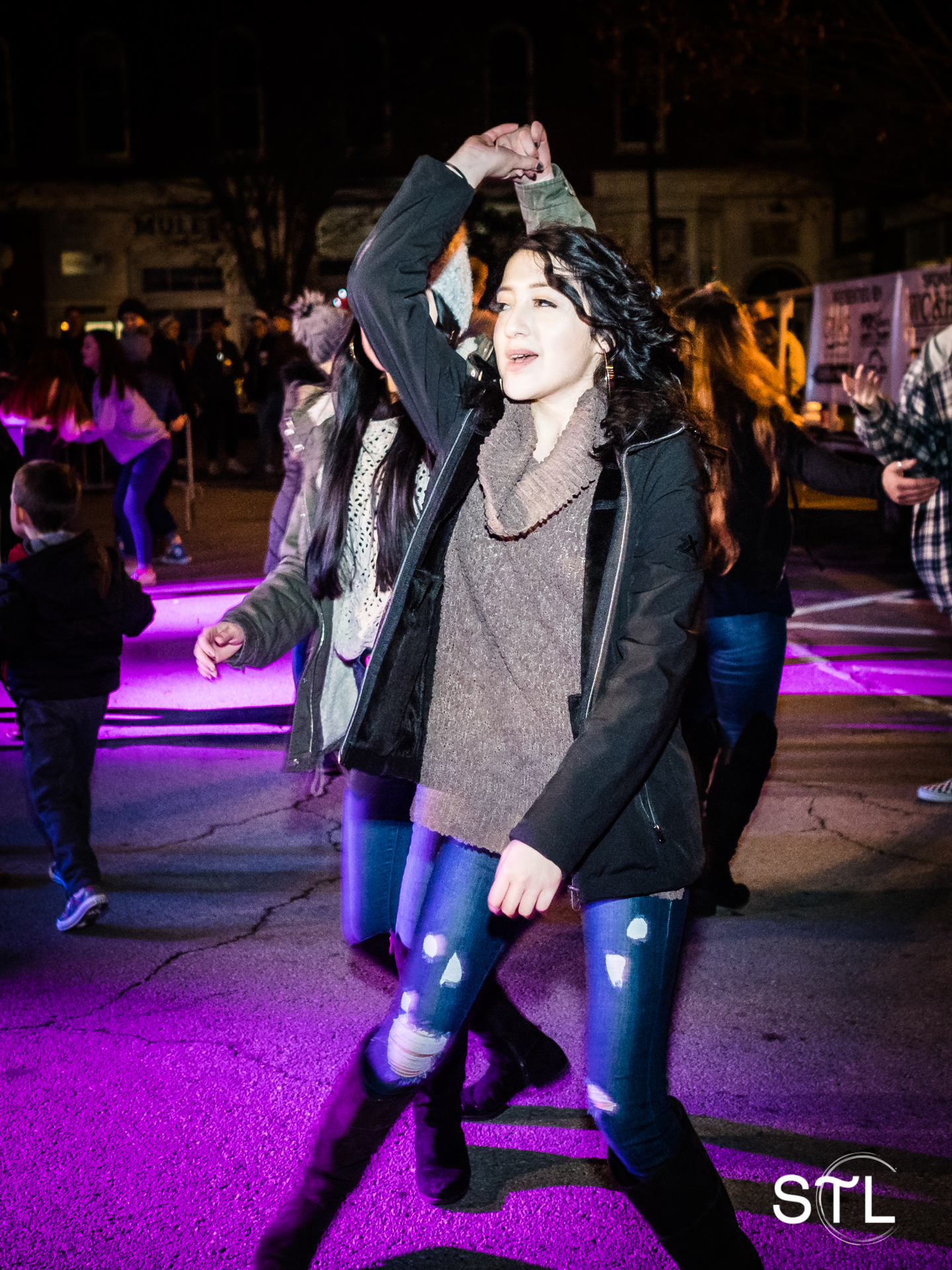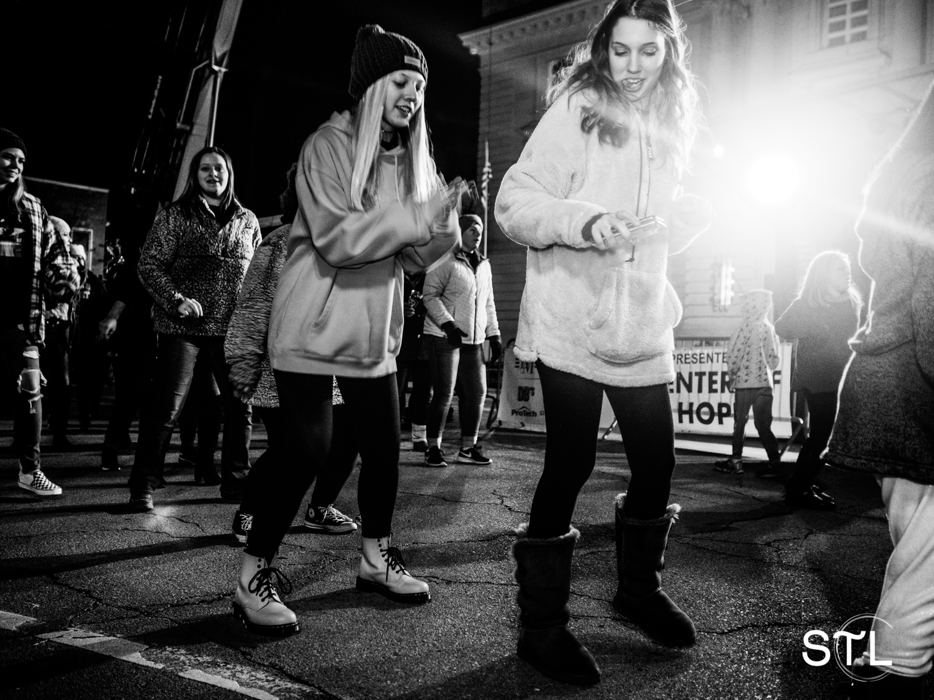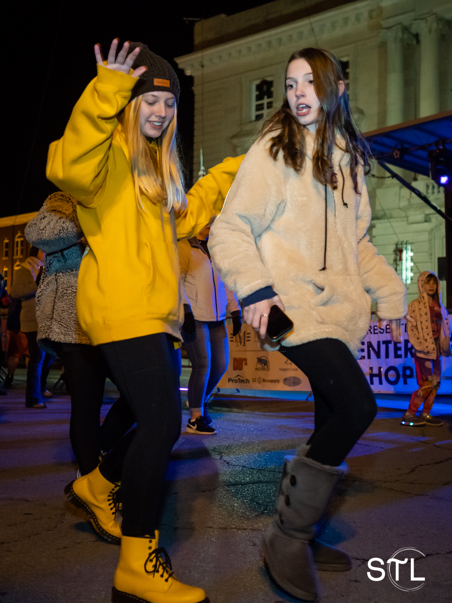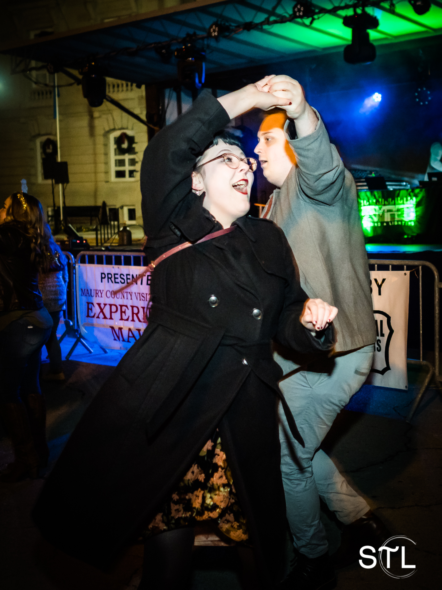 I started the night capturing the scene around the courthouse. There were more food trucks at this year’s event. There was a stage and a fenced off area for dancing on the southwest corner of the courthouse. The cool lighting effects and sound was provided by Amped Sound and Lighting with DJ Vanilla Ice stoking the flames. These guys know how to put on a show. I met the owner. He gave me a quick rundown of his setup and showed me the controls on his tablet – cool stuff! As it got closer to midnight, more people descended on the square. The temperature was close to the freezing mark, but between the party atmosphere and maybe some adult beverages for some of the grownups, it didn’t seem like the cold affected anyone.